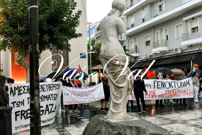 Η Συλλογική Δράση για την Παλαιστίνη Ν. Κορινθίας διοργάνωσε χθες το απόγευμα στην βροχερή Κόρινθο, έξω από την Εθνική Τράπεζα, έκτακτη συγκέντρωση διαμαρτυρίας για το Παλαιστινιακό και μετά τα τελευταία διεθνή γεγονότα με το Ισραήλ. Συνθήματα της συγκέντρωσης, μεταξύ άλλων : “Το βλέμμα μας στραμμένο στη Γάζα, κάτω τα χέρια από τον στόλο αλληλεγγύης και λευτεριά στην Παλαιστίνη”.