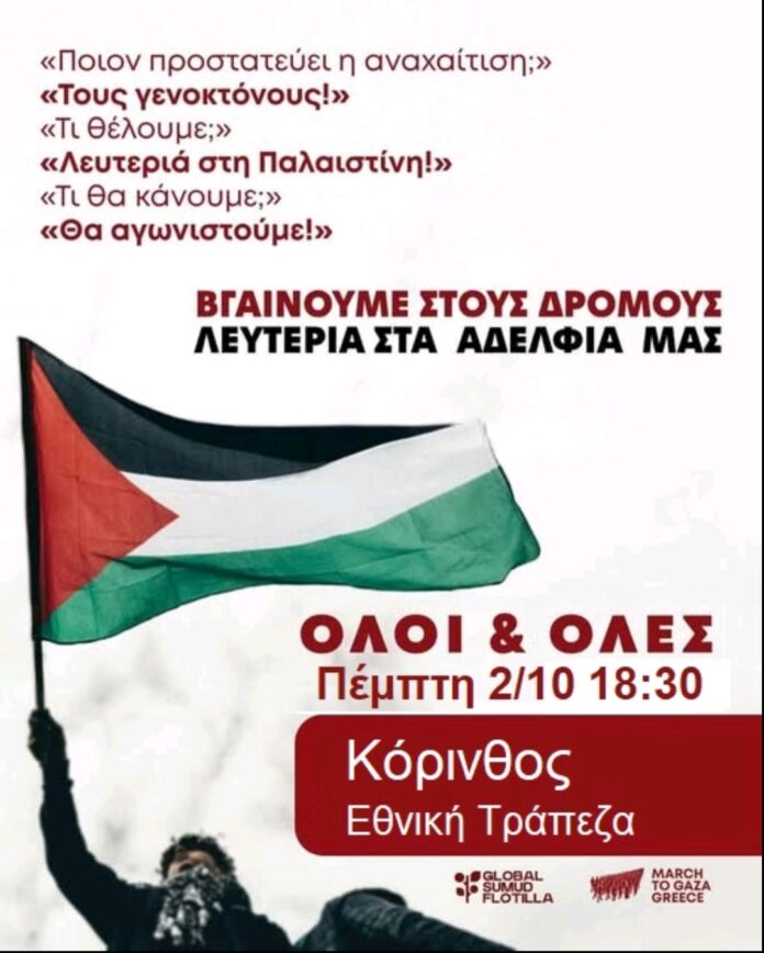 Η Συλλογική Δράση για την Παλαιστίνη Ν. Κορινθίας καλεί σε έκτακτη συγκέντρωση διαμαρτυρίας