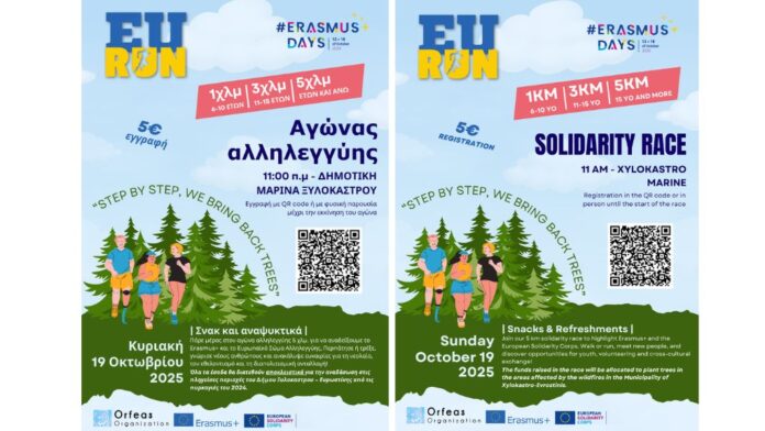 EU RUN Ξυλόκαστρο 2025 : “Ελάτε να τρέξουμε όλοι μαζί για έναν καλό σκοπό, στις 19 Οτωβρίου!”